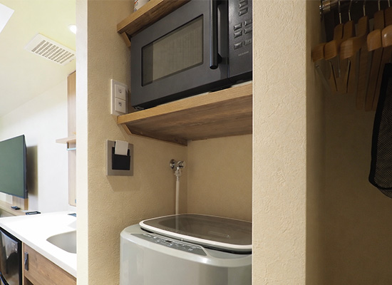 ※洗濯機、電子レンジ、2ドア冷蔵庫、スマートテレビ(55インチ)、加湿器機能付き空気清浄機を全室に完備