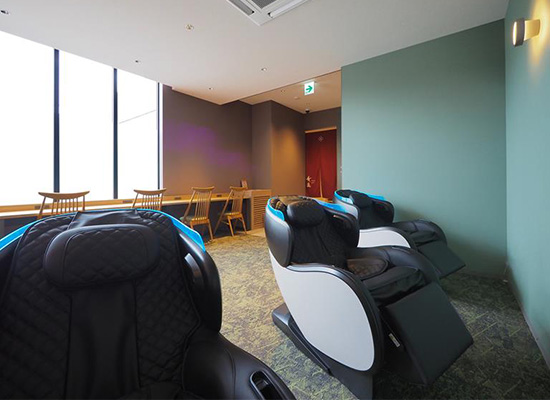 1階には大浴場に隣接したリラクゼーションラウンジを設け、湯上がり後にゆったりとくつろげる空間を整えました。マッサージ機や漫画コーナーも備え、思い思いの時間をお過ごしいただけます。