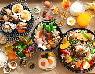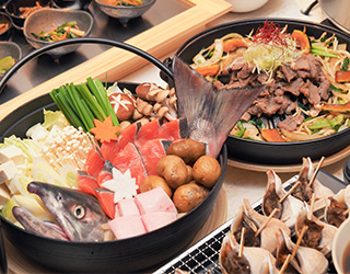 レストラン「灯」では、「体に優しい」「地元の食材」「選ぶ楽しさ」をテーマに、鮭文化が息づく石狩ならではの新鮮な海の幸や北海道の食を取り入れ、観光やビジネスの拠点としてご滞在いただく皆さまに、料理長こだわりの、健康的でバランスの良い朝食をブッフェ形式でご提供いたします。石狩鍋や鮭のちゃんちゃん焼き、ジンギスカン、カスベ唐揚げ、じゃがバター(塩辛やいくらをお好みでトッピング)といったご当地メニューに加え、サーモン、いくら、ホタテなどが入った海鮮小鉢や北海道産野菜を使用したポテトサラダ、かぼちゃチーズサラダなど、地元ならではの食材を取り入れた多彩なラインアップを日替わりでお楽しみいただけます。長期滞在の方にも毎朝新しい味との出会いをご用意し、食の楽しさにあふれたひとときをお届けします。