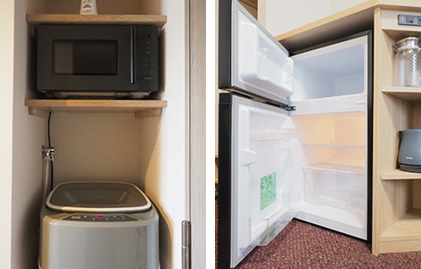※洗濯機、電子レンジ、2ドア冷蔵庫、スマートテレビ(50インチ)、加湿器機能付き空気清浄機を全室に完備