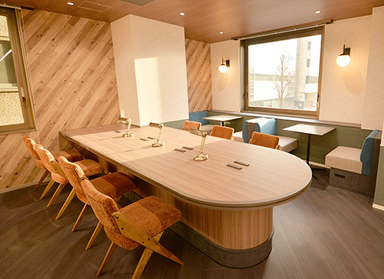 全フロアに会議室やラウンジ、テレカンブースといった業務に必要な基本機能を整備し、さらに、6階、9階の執務室には、デスク・チェアを設置しました。入居企業の皆さまは、内装工事やレイアウト設計を行うことなく、入居後すぐに業務を開始できる点が当オフィスの特長です。また、必要以上に造り込まないことで、企業規模や成長フェーズに応じて柔軟にお使いいただくことを可能にします。
